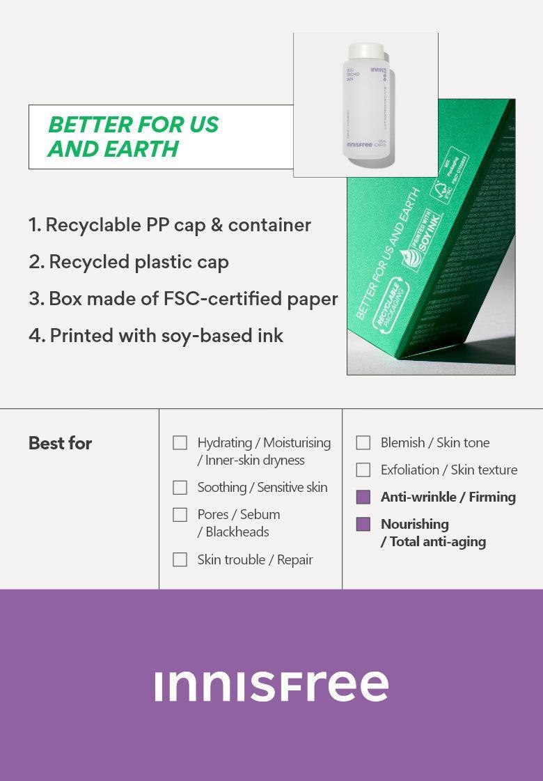 1. Essential toner to keep the skin feeling moisturized Essential toner with hyaluronic acid from Jeju green beans to keep the skin feeling moisturized and firm after washing the face 2. Nourishing gel texture Gel network technology to ensure complete absorption of ingredients for smooth, supple and glowing skin