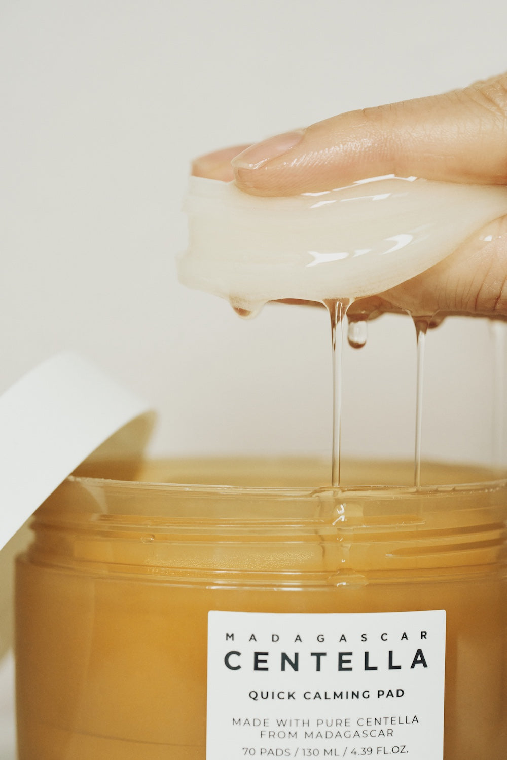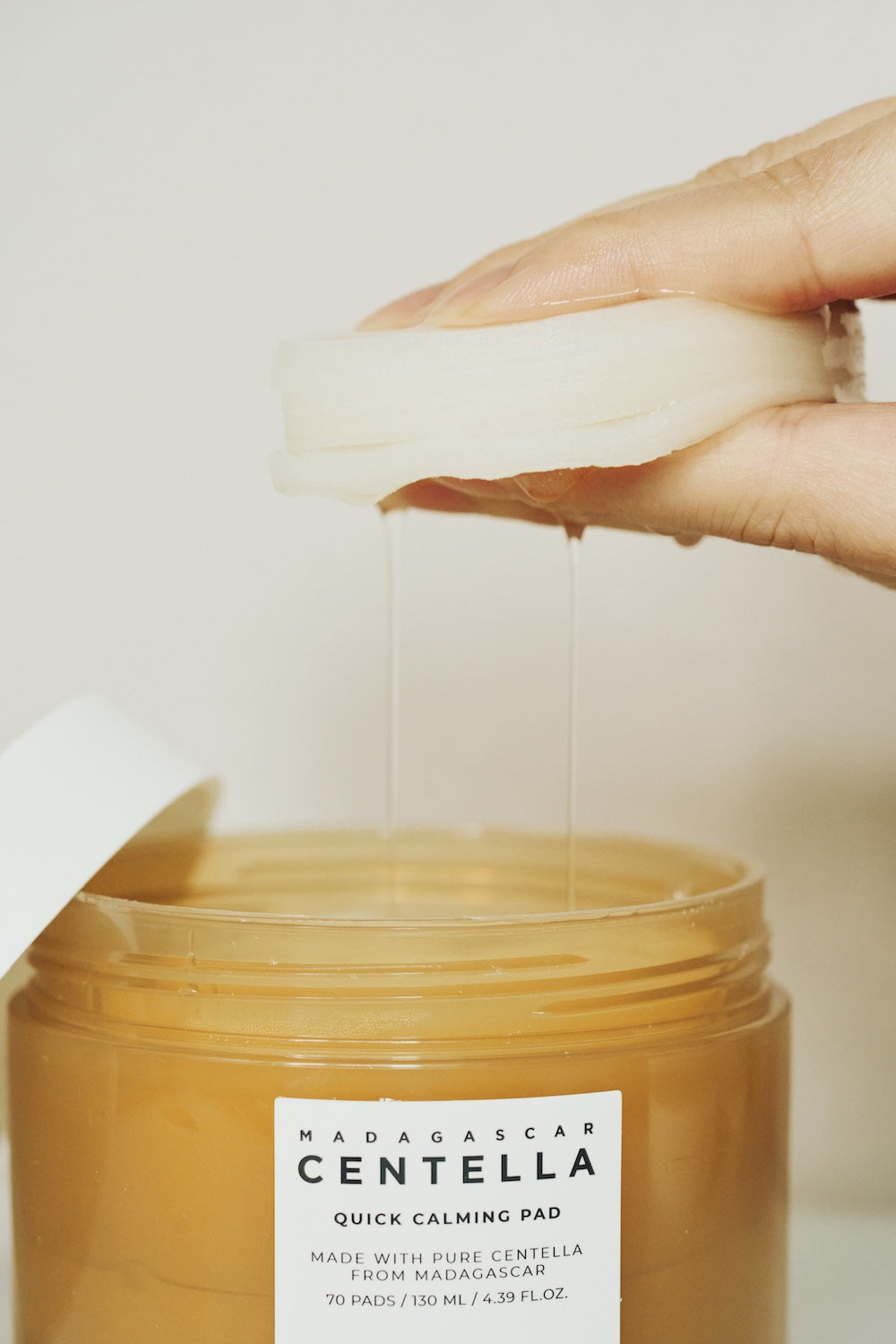 Centella Quick Calming Pad Pads contain rich essence that instantly calms the skin by replenishing moisture, and quickly absorbs without any stickiness.