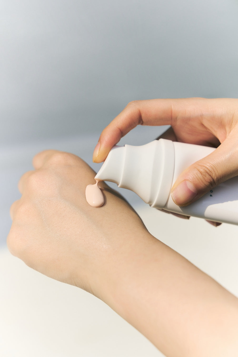 At the last step of basic skincare, evenly apply on areas exposed to UV rays such as face, neck, arms, and legs.