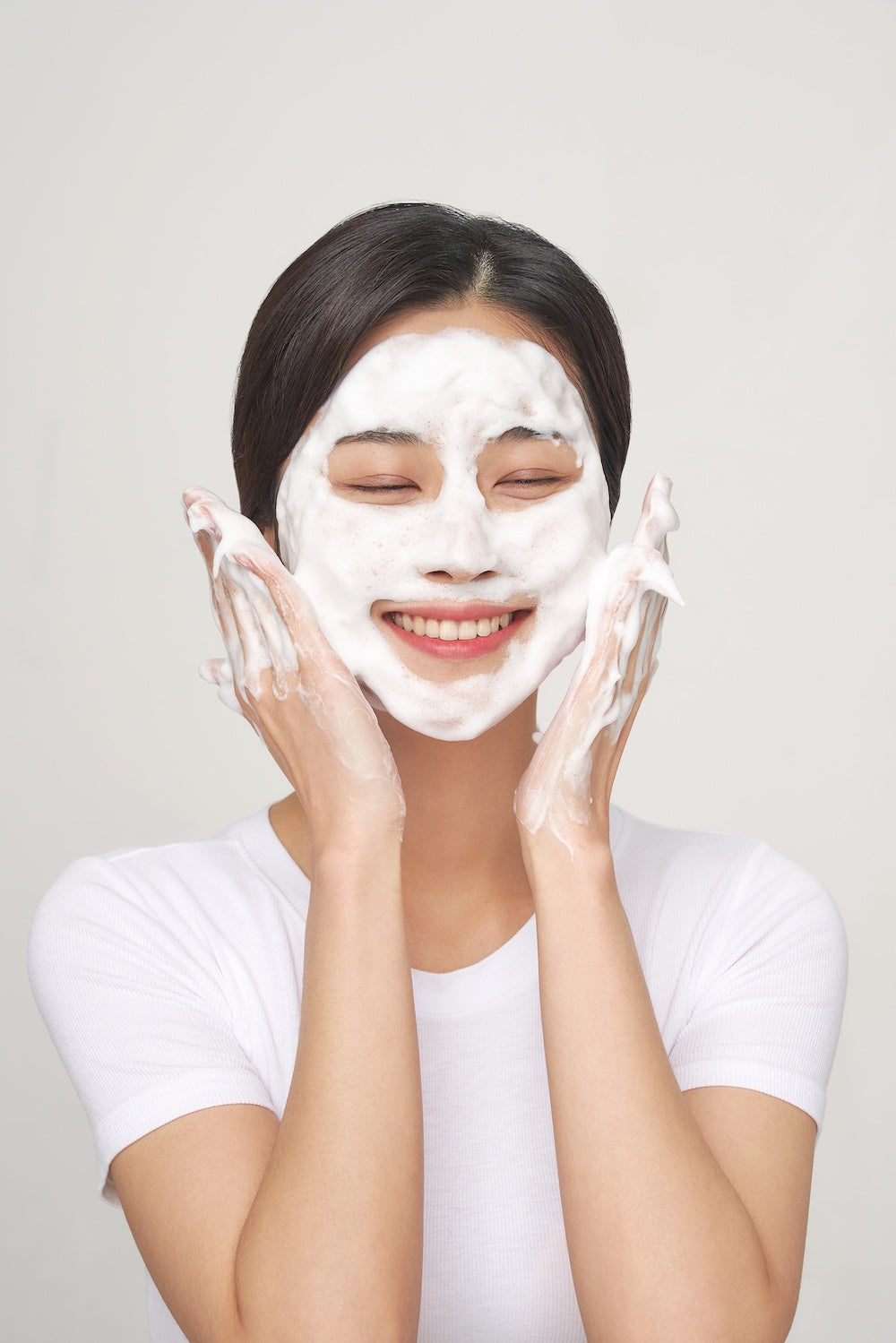 Create a rich foam with foam net, cleanse skin, and rinse thoroughly with water.